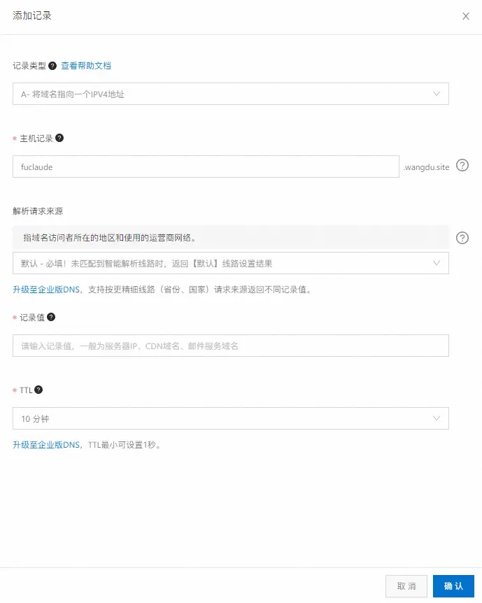 宝塔面板添加反向代理 登录域名控制台,我这里是 阿里域名控制台,解析 - 添加记录 - 主机记录:
